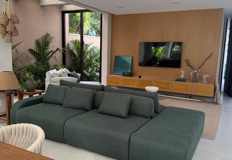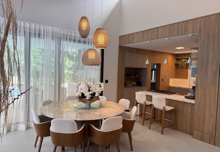 Espaçosa casa de alto padrão com 5 suítes, mobiliada e climatizada, piscina com prainha, sauna e área gourmet completa.
